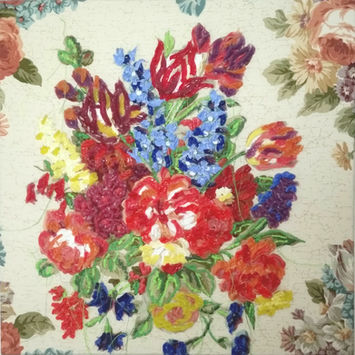 Since the early 1990s, van Arendonk has worked primarily on patterned textile surfaces, transforming them through layers of acrylic paint, pigmented silicone, and intricate embroidery. This distinctive combination creates vibrant, textured works that blur the boundaries between painting, design, and sculpture. His art often features motifs from nature—such as flowers, birds, and organic forms—set against the repetitive structures of industrial prints, creating a dialogue between chaos and order, the intimate and the commercial.