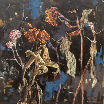 Benade mainly paints portraits that often contain symbolic objects to reveal something about the people in the paintings. The use of these objects and colour represents an idea and a feeling.