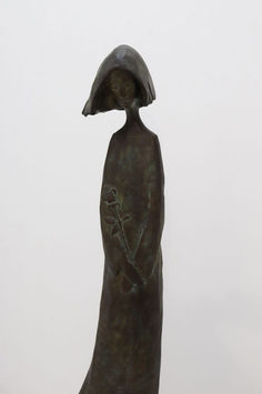 I see what Megaw means. In a corner stands a bronze figure, almost lifesize. It is simple and quiet, slim and vertical with just a suggestion of the tip of the hair and the edge of the long dress being flicked by a light air.